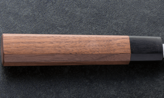 60,500円(税5,500円)青紙2号積層鋼出刃180mm。切れ味抜群、耐久性バツグン。ウォールナット柄でオリジナル感満載。 -