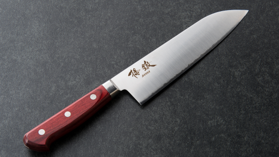 粉末ハイスステンレス鋼 口金付三徳包丁170mm ワインレッド柄