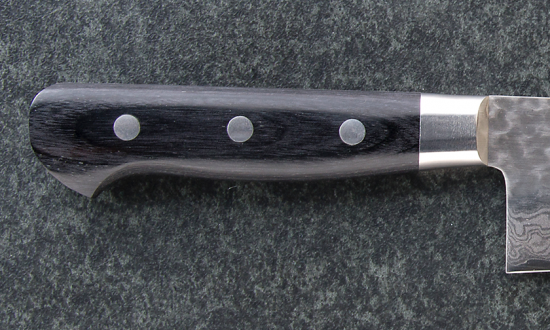 口金付の柄は3点カシメで固定されているので耐久性に優れ、水による腐食も防いでくれますので衛生的です。