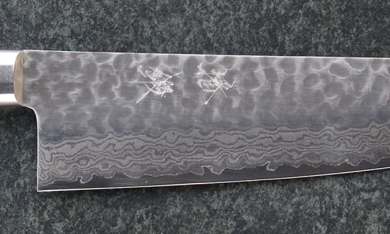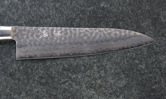 ステンレスV金10号ダマスカス牛刀 鎚目 210mm